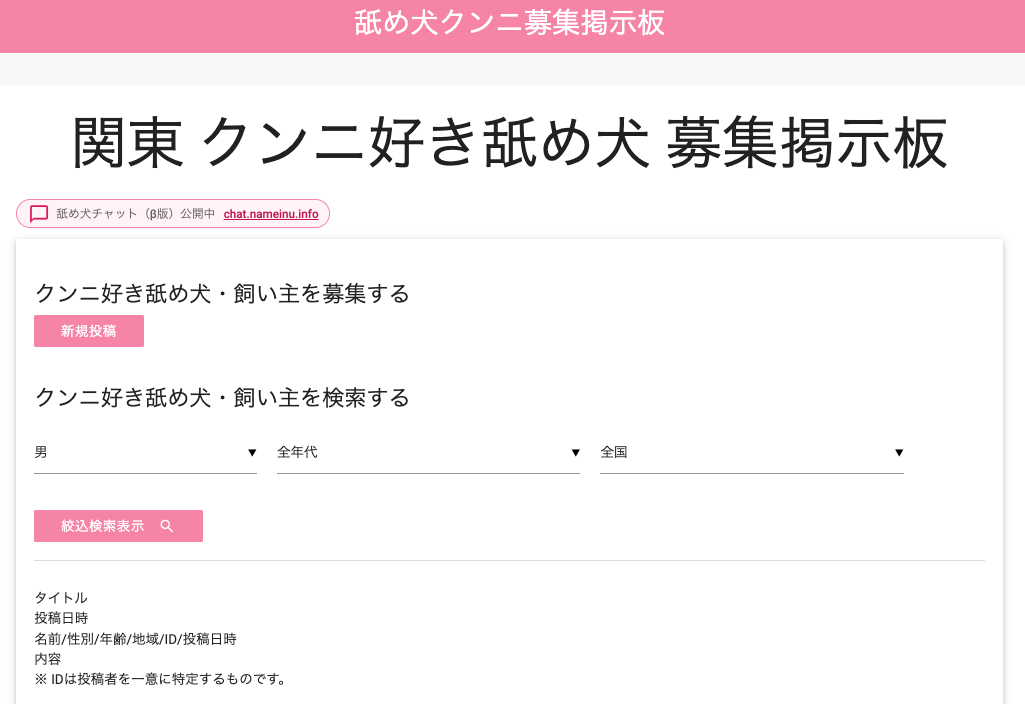 2. 舐め犬クンニ募集掲示板(bbs.nameinu.info)|登録不要で使える無料掲示板