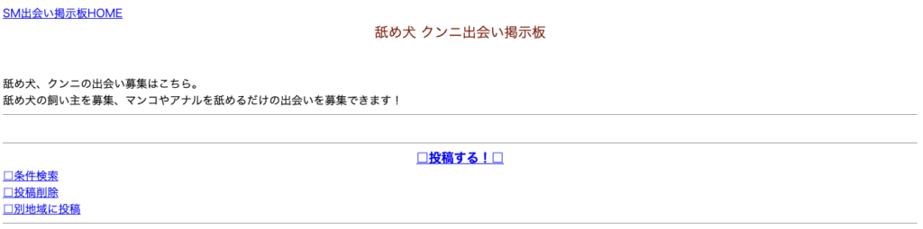 「舐め犬 クンニ出会い掲示板」は、zatsubitownが運営するSM・性癖特化型の出会い掲示板の一カテゴリです。テキストベースのシンプルな掲示板で、気軽に自己紹介・募集文を投稿できます。