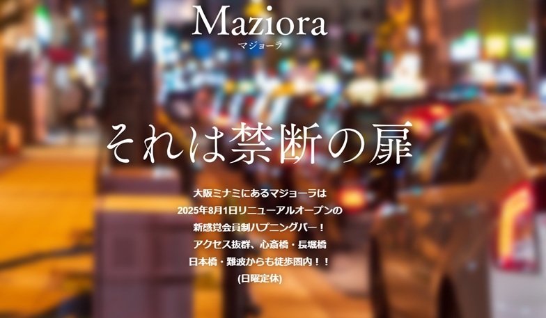 大阪ミナミに2025年8月1日リニューアルオープンしたばかりの会員制コンセプトバー「マジョーラ(Maziora)」について、初心者の方が知っておきたい基本情報、料金、客層、ルール、利用の流れまで丁寧に解説します。初めての来店で不安な方も、この記事を読めば安心して一歩を踏み出せますよ。